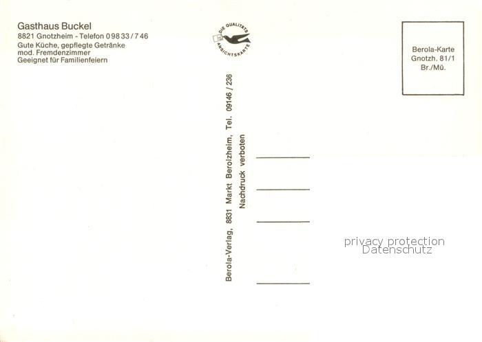 73645548 Gnotzheim Gasthaus Buckel Gastraeume Zimmer postalisch nicht gelaufen Erhaltung siehe scans [WerneD78] KatCode: 11110009577133