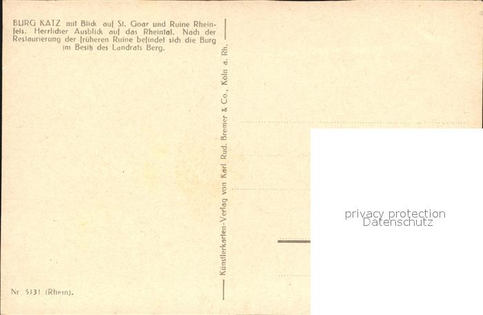 72424457 Goar St Burg Katz postalisch nicht gelaufen Erhaltung siehe scans KatCode: 11110007140133