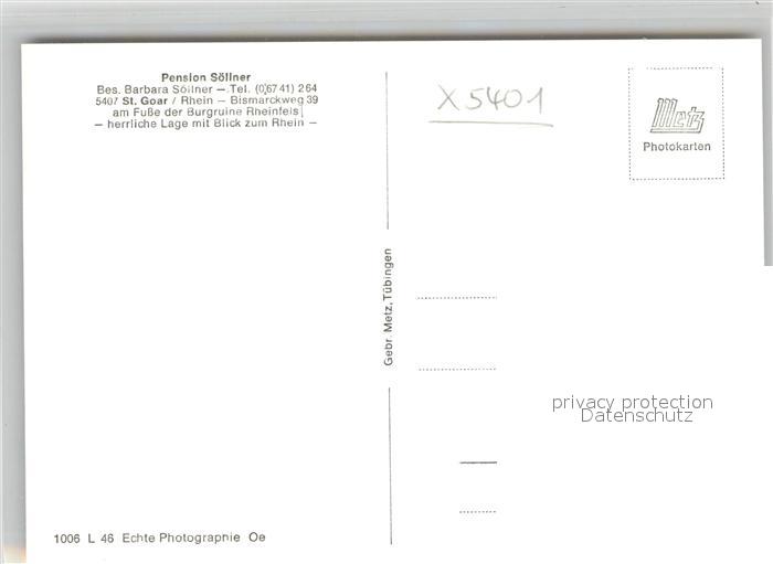 42976327 Goar St Pension Soellner Ruine Rheinfels postalisch nicht gelaufen Erhaltung siehe scans [KathaD81] KatCode: 11110007140133