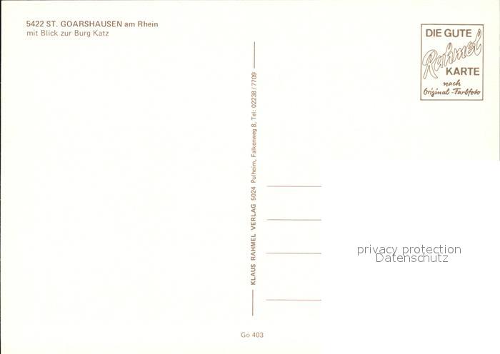 72519230 Goarshausen St Burg Katz postalisch nicht gelaufen Erhaltung siehe scans KatCode: 11110007141121