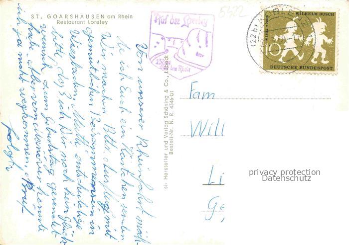 74040941 alte Postkarte Goarshausen St Restaurant Loreley postalisch gelaufen Erhaltung siehe scans [WerneD78] KatCode: 11110007141121