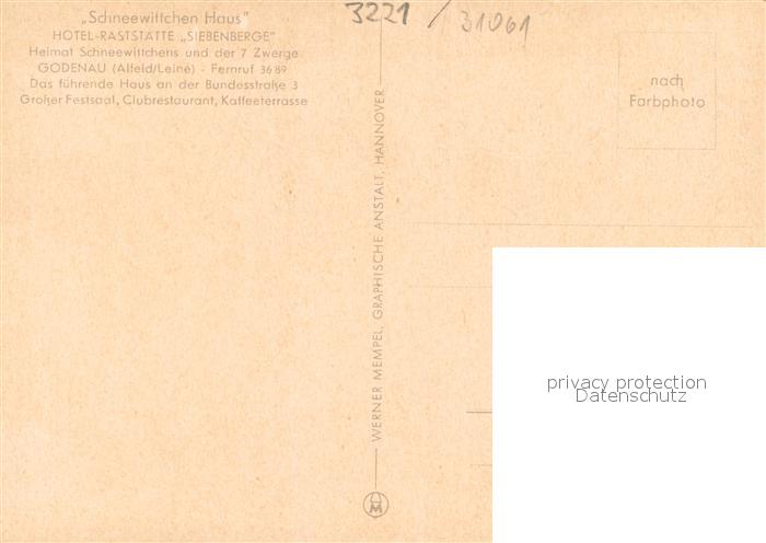 73690869 Godenau Alfeld Schneewittchen Haus Hotel Raststaette Siebenberge postalisch nicht gelaufen Erhaltung siehe scans [WerneD78] KatCode: 11110003254002