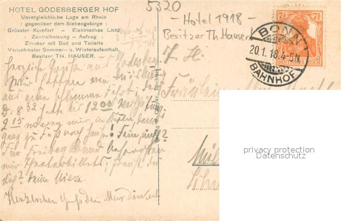 33703583 alte Postkarte Godesberg Bad Hotel Godesberger Hof postalisch gelaufen Erhaltung siehe scans [WerneD78] KatCode: 11110005314000