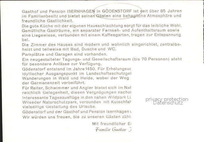 71832726 Goedenstorf Gasthof-Pension Isernhagen postalisch nicht gelaufen Werbekarte (keine Postkarte) Erhaltung siehe scans KatCode: 11110003353013