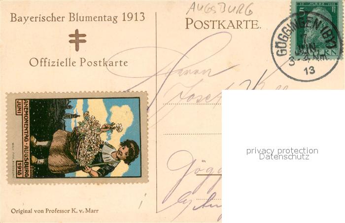 73729192 alte Postkarte Goeggingen Bayern Bayerischer Blumentag postalisch gelaufen Erhaltung siehe scans [WerneD78] KatCode: 11110009761000