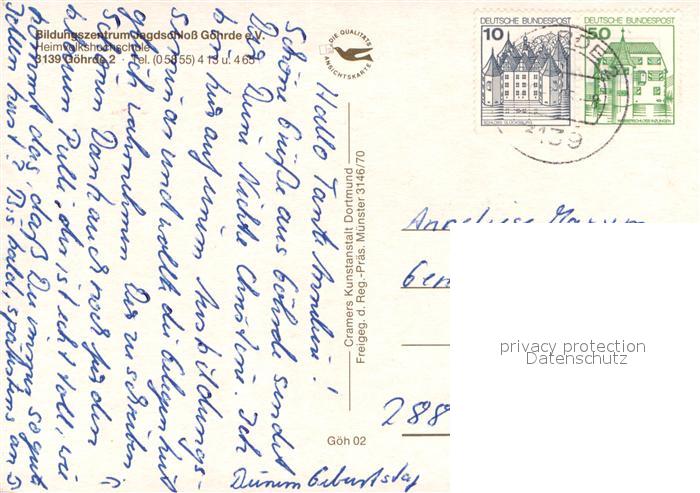 73618210 alte Postkarte Goehrde Bildungszentrum Jagdschloss Fliegeraufnahme postalisch gelaufen Erhaltung siehe scans [FriedD77] KatCode: 11110003354006