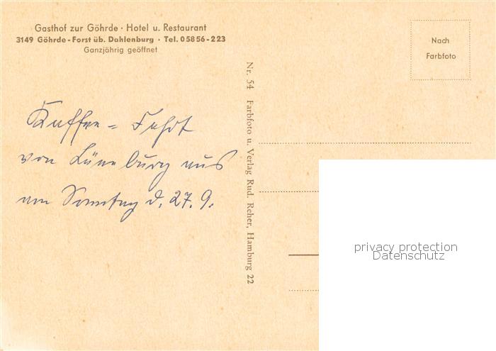 73843980 Goehrde Gasthof zur Goehrde Hotel Restaurant postalisch nicht gelaufen Erhaltung siehe scans [WerneD78] KatCode: 11110003354006