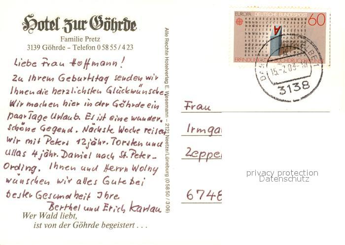 73541286 alte Postkarte Goehrde Hotel zur Goehrde postalisch gelaufen Erhaltung siehe scans [KathaD81] KatCode: 11110003354006
