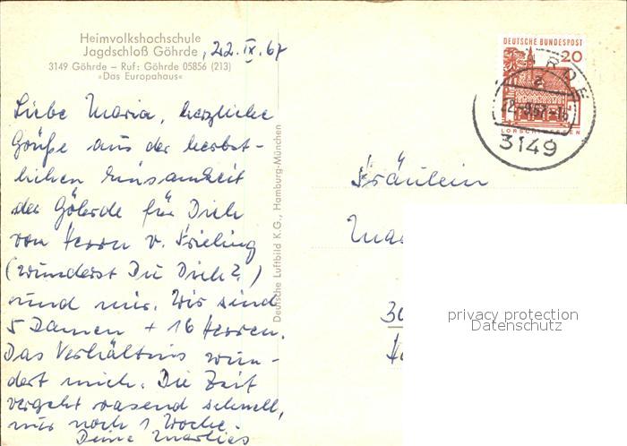 72606710 alte Postkarte Goehrde Jagdschloss postalisch gelaufen Erhaltung siehe scans [NatalD47] KatCode: 11110003354006