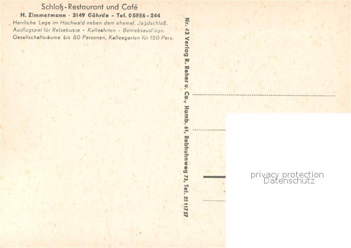 73687684 Goehrde Schloss Restaurant und Cafe Heimvolkshochschule ehem. Jagdschloss der Hohenzollern Gemaelde Hofjagd in der Goehrde 1723 Waldweg postalisch nicht gelaufen Erhaltung siehe scans [FriedD77] KatCode: 11110003354006
