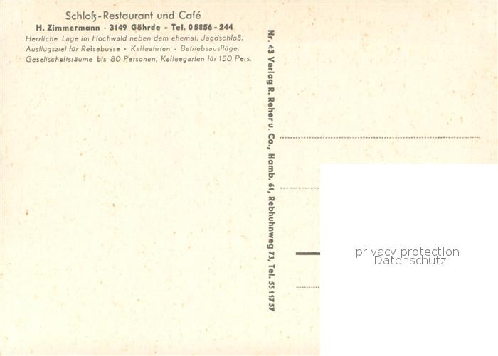 73668936 Goehrde Schloss Restaurant und Cafe Heimvolkshochschule Hofjagd in der Goehrde Baumallee postalisch nicht gelaufen Erhaltung siehe scans [WerneD78] KatCode: 11110003354006