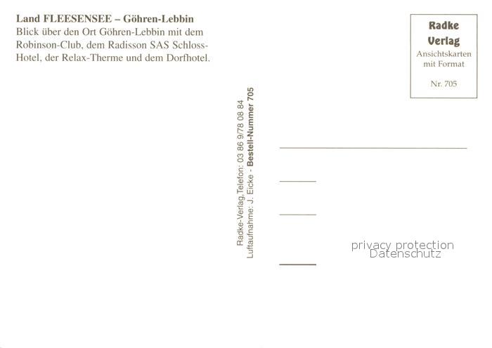 73167260 Goehren-Lebbin Land Fleesensee Robinson Club Radisson Schlosshotel Therme Dorfhotel Mecklenburgische Seenplatte Fliegeraufnahme postalisch nicht gelaufen Erhaltung siehe scans [FriedD77] KatCode: 11110013056011