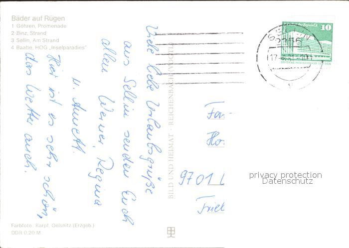 72383111 alte Postkarte Goehren Ruegen Binz Sellin Baabe Straende Restaurant Inselparadies postalisch gelaufen Erhaltung siehe scans KatCode: 11110013061014