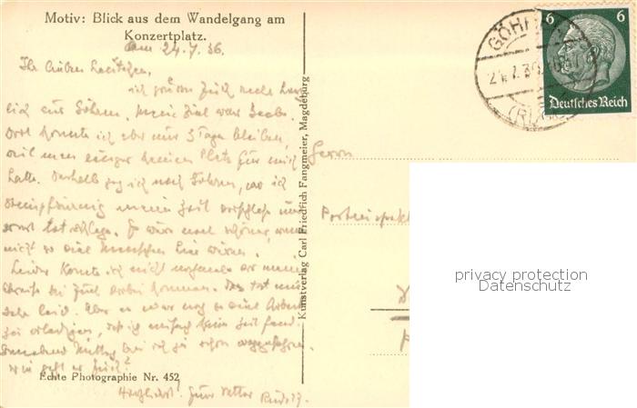 73776423 alte Postkarte Goehren Ruegen Blick aus dem Wandelgang am Konzertplatz Serie Aus deutschen Landen postalisch gelaufen Erhaltung siehe scans [FriedD77] KatCode: 11110013061014