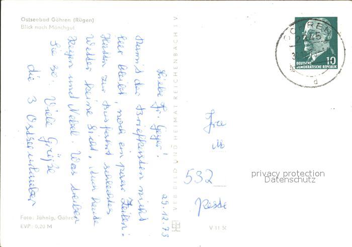 72183035 alte Postkarte Goehren Ruegen Blick nach Moenchgut postalisch gelaufen Erhaltung siehe scans KatCode: 11110013061014