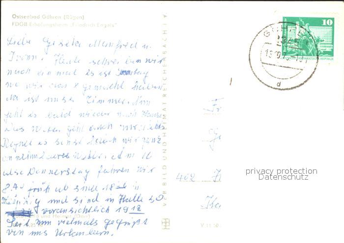 72273304 alte Postkarte Goehren Ruegen FDGB Erholungsheim Friedrich Engels postalisch gelaufen Erhaltung siehe scans KatCode: 11110013061014