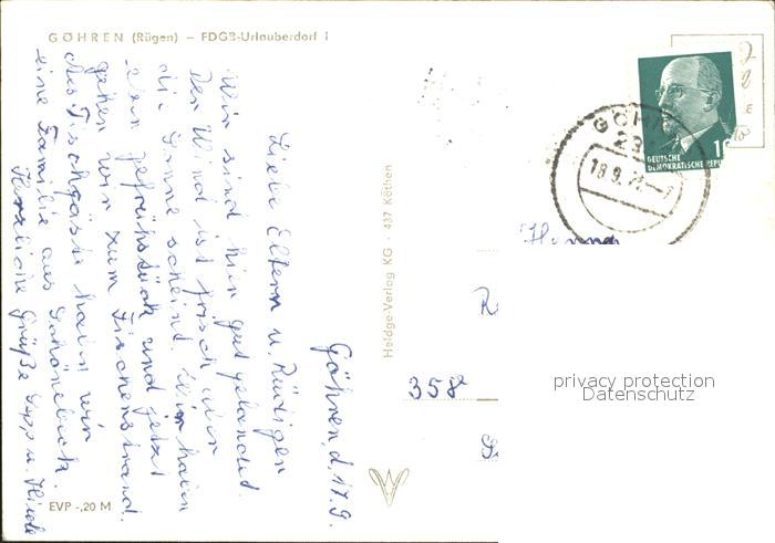 72084072 alte Postkarte Goehren Ruegen FDGB Urlauberdorf I postalisch gelaufen Erhaltung siehe scans KatCode: 11110013061014