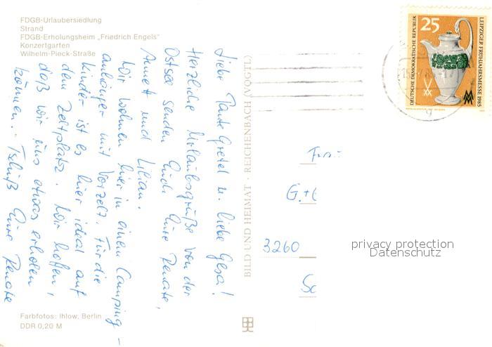 73094953 alte Postkarte Goehren Ruegen FDGB Urlaubersiedlung Erholungsheim Friedrich Engels Strand postalisch gelaufen Erhaltung siehe scans [KathaD81] KatCode: 11110013061014