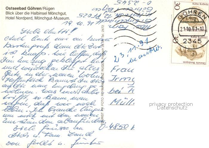 73755837 alte Postkarte Goehren Ruegen Fliegeraufnahme mit Halbinsel Moenchgut Hotel Nordperd Moenchgut Museum postalisch gelaufen Erhaltung siehe scans [FriedD77] KatCode: 11110013061014