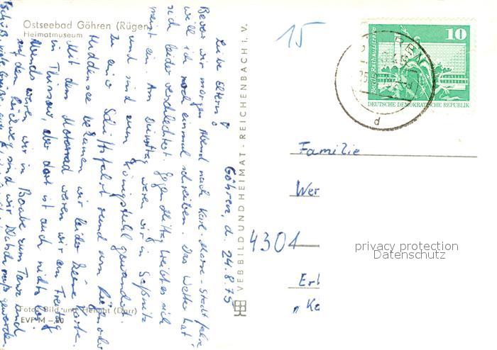 73040158 alte Postkarte Goehren Ruegen Heimatmuseum postalisch gelaufen Erhaltung siehe scans [KathaD81] KatCode: 11110013061014