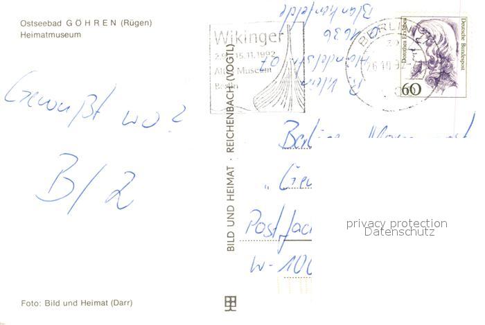 72926068 alte Postkarte Goehren Ruegen Heimatmuseum postalisch gelaufen Erhaltung siehe scans [LiesaD40] KatCode: 11110013061014