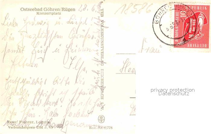 72634675 alte Postkarte Goehren Ruegen Konzertplatz postalisch gelaufen Erhaltung siehe scans [KathaD79] KatCode: 11110013061014
