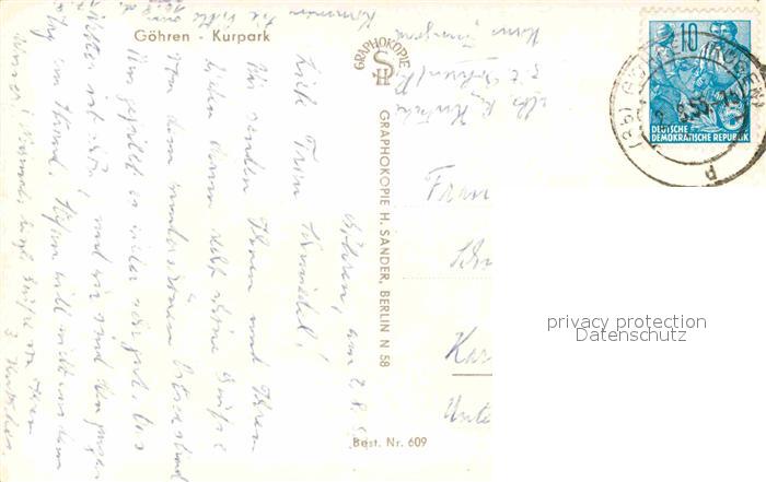 72698578 alte Postkarte Goehren Ruegen Kurpark postalisch gelaufen Erhaltung siehe scans [LiesaD40] KatCode: 11110013061014