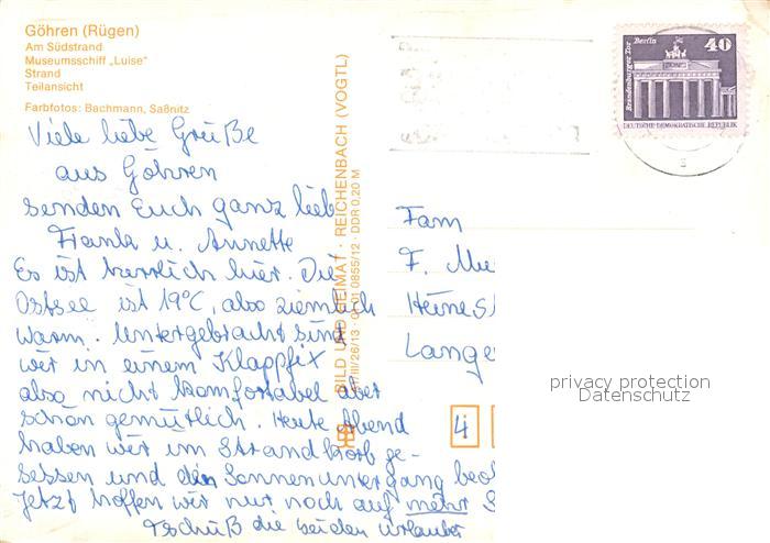73312027 alte Postkarte Goehren Ruegen Museumsschiff Luise Strand postalisch gelaufen Erhaltung siehe scans [NatalD47] KatCode: 11110013061014