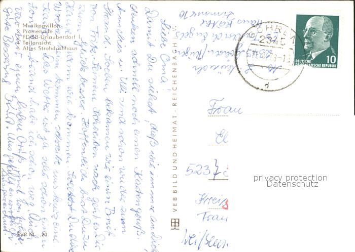 72342524 alte Postkarte Goehren Ruegen Musikpavillon Promenade FDGB Urlauberdorf Strohdachhaus postalisch gelaufen Erhaltung siehe scans KatCode: 11110013061014