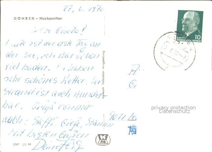 72328219 alte Postkarte Goehren Ruegen Musikpavillon Promenade postalisch gelaufen Erhaltung siehe scans KatCode: 11110013061014