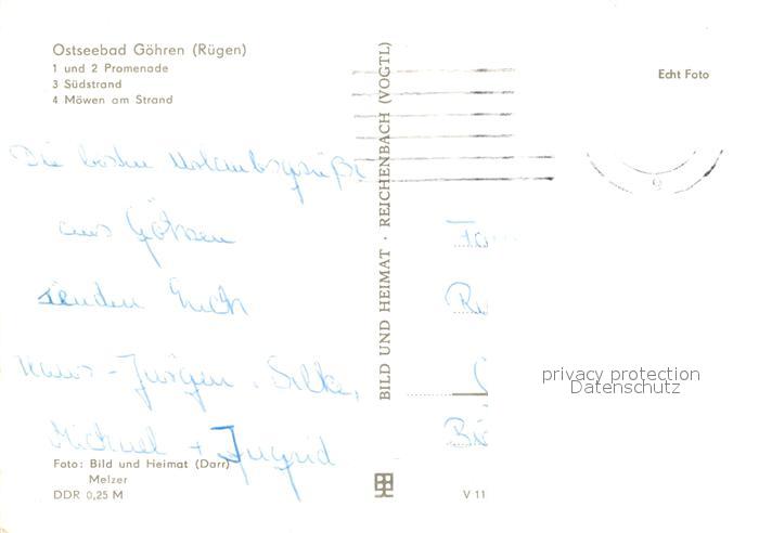 73044968 alte Postkarte Goehren Ruegen Promenade Suedstrand Moewen postalisch gelaufen Erhaltung siehe scans [WerneD78] KatCode: 11110013061014