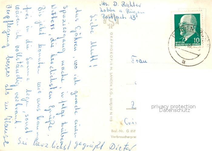 73045306 alte Postkarte Goehren Ruegen Seebruecke Bungalows Panorama Strand postalisch gelaufen Erhaltung siehe scans [WerneD78] KatCode: 11110013061014