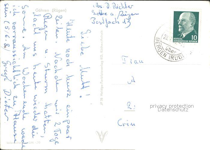 alte Postkarte Goehren Ruegen Strand postalisch gelaufen Erhaltung siehe scans
