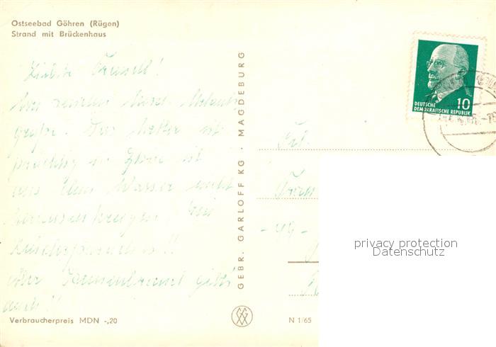 73593415 alte Postkarte Goehren Ruegen Strand mit Brueckenhaus postalisch gelaufen Erhaltung siehe scans [FriedD77] KatCode: 11110013061014
