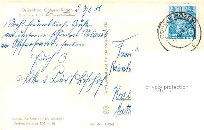 72698566 alte Postkarte Goehren Ruegen Strandeck Haus der Gewerkschaften postalisch gelaufen Erhaltung siehe scans [LiesaD40] KatCode: 11110013061014