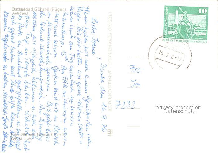 71935131 alte Postkarte Goehren Ruegen Suedstrand postalisch gelaufen Erhaltung siehe scans KatCode: 11110013061014