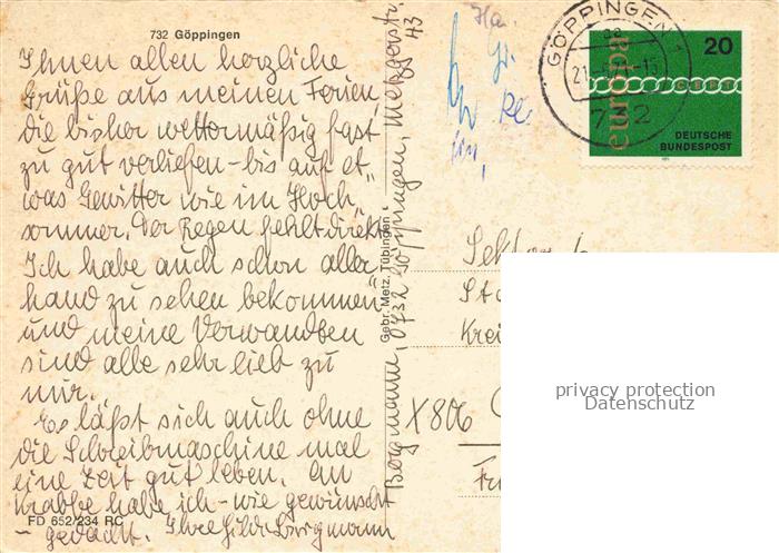 74043160 alte Postkarte GoePPINGEN BW Panorama Schule Kirche Park Allianzgebaeude postalisch gelaufen Erhaltung siehe scans [WerneD78] KatCode: 11110008117026