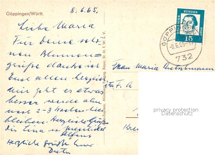 73124264 alte Postkarte Goeppingen Fliegeraufnahme postalisch gelaufen Erhaltung siehe scans [KathaD81] KatCode: 11110008117026