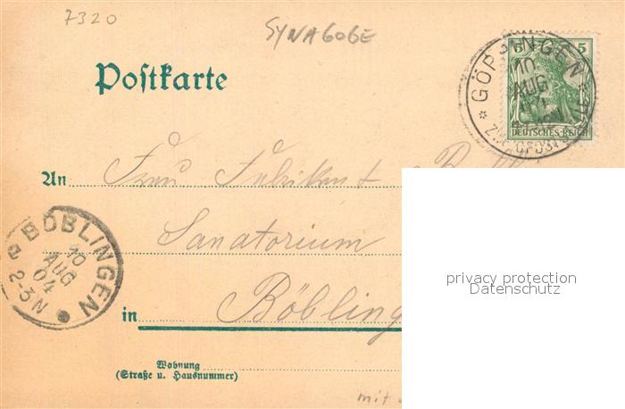 33145778 alte Postkarte Goeppingen Knabenschule und Synagoge Realschule Stadtkirche postalisch gelaufen Erhaltung siehe scans [PaolaD17] KatCode: 11110008117026