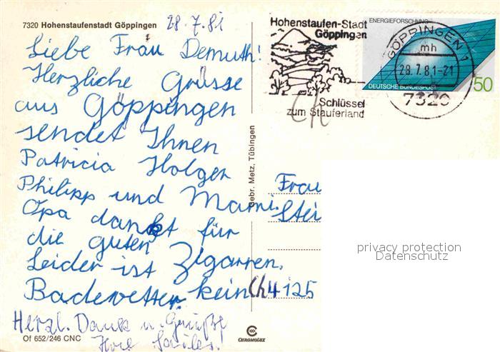 72713337 alte Postkarte Goeppingen Panorama Hohenstaufenstadt postalisch gelaufen Erhaltung siehe scans [FriedD77] KatCode: 11110008117026