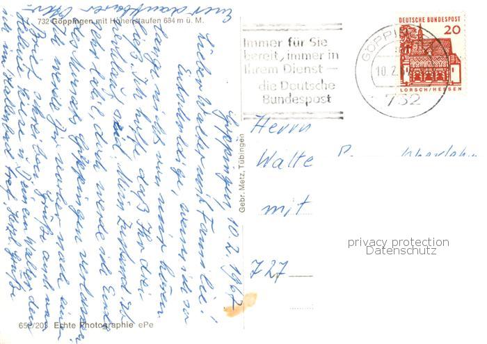 73829803 alte Postkarte Goeppingen Panorama mit Hohenstaufen postalisch gelaufen Erhaltung siehe scans [WerneD78] KatCode: 11110008117026