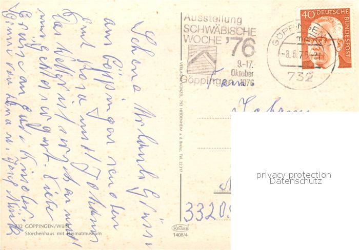 72961308 alte Postkarte Goeppingen Storchenhaus mit Heimatmuseum postalisch gelaufen Erhaltung siehe scans [WerneD78] KatCode: 11110008117026