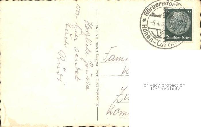 12162625 old postcard Goerbersdorf Schlesien Dr. Brehmers Sanatorium mit Storchberg postalisch gelaufen Erhaltung siehe scans KatCode: 11410