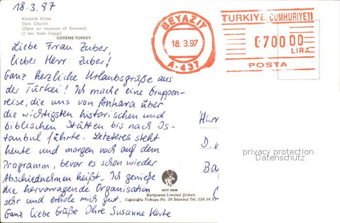 old postcard Goereme Nevsehir Dark Church postalisch gelaufen Erhaltung siehe scans
