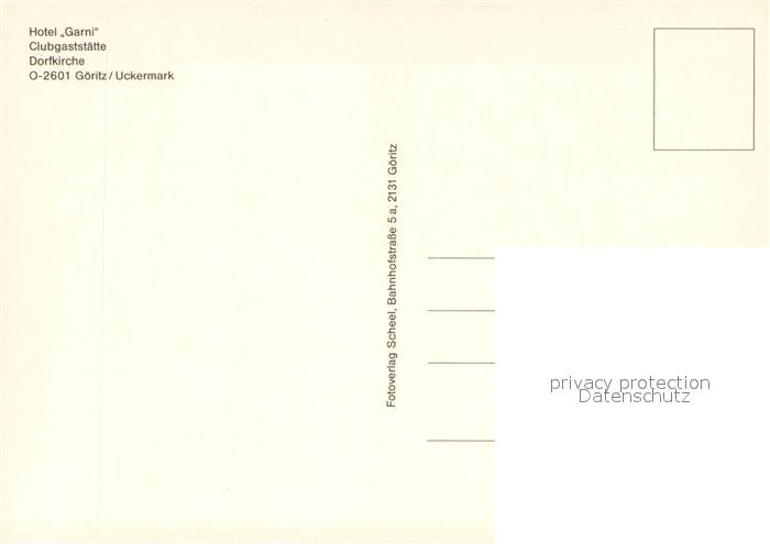 73642401 Goeritz Uckermark Hotel Garni Clubgaststaette Dorfkirche postalisch nicht gelaufen Erhaltung siehe scans [FriedD77] KatCode: 11110012073216