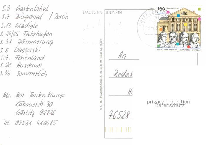 72819140 alte Postkarte Goerlitz Sachsen Altstadt mit Nikolaiturm Vogtshof Peterskirche postalisch gelaufen Erhaltung siehe scans [FriedD77] KatCode: 11110014263000