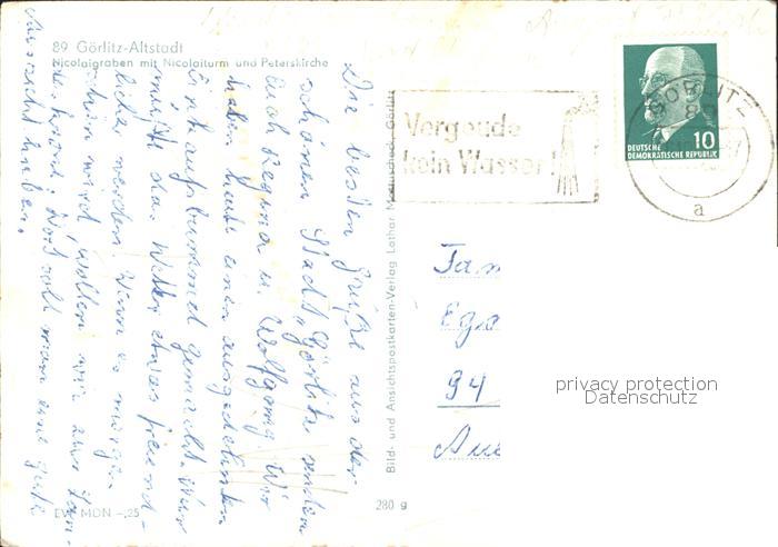 72335899 alte Postkarte Goerlitz Sachsen Altstadt Nicolaigraben mit Nicolaiturm und Peterskirche postalisch gelaufen Erhaltung siehe scans KatCode: 11110014263000