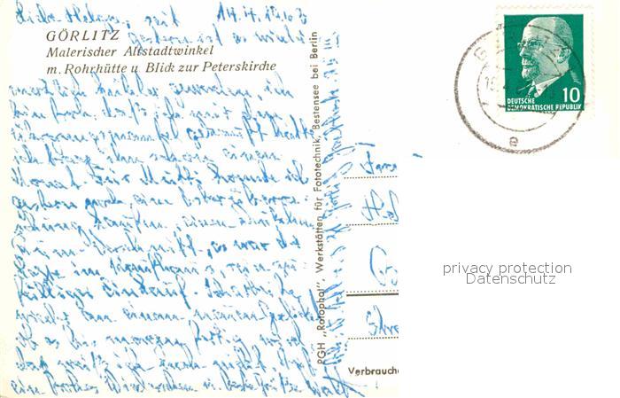 72794792 alte Postkarte Goerlitz Sachsen Altstadtwinkel mit Rohrhuette und Peterskirche postalisch gelaufen Erhaltung siehe scans [LiesaD40] KatCode: 11110014263000