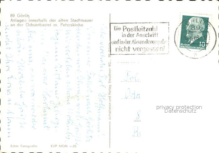 72447953 alte Postkarte Goerlitz Sachsen Anlagen Stadtmauer Ochsenbastei Peterskirche postalisch gelaufen Erhaltung siehe scans KatCode: 11110014263000