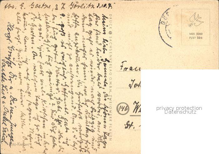 72120160 alte Postkarte Goerlitz Sachsen Blick zum Untermarkt postalisch gelaufen Erhaltung siehe scans KatCode: 11110014263000